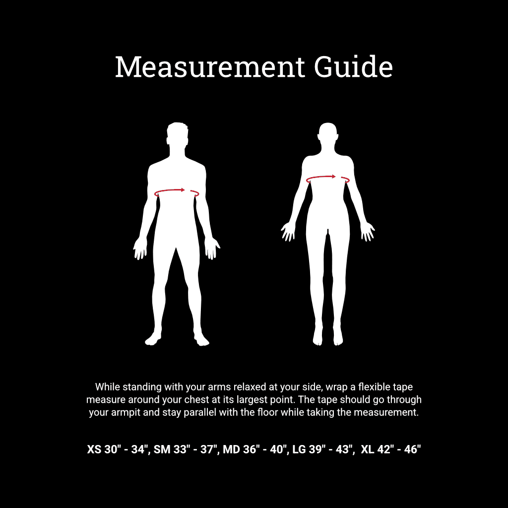Size(s): XS (30″-34″), SM (33″-37″), MD (36″-40″), LG (39″-43″), XL (42″-46″)
